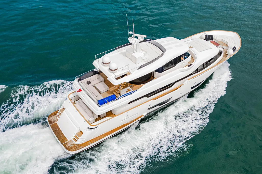 This motor yacht Custom Line Navetta 28 was produced by the brand Custom Line Yachts in 2016. The Navetta 28 is a 28.31 meter semi-displacement yacht with 5 guest cabins and a draft of 2.21 meters which can reach speeds of up to 16 knots. The yacht has a fiberglass / grp hull with a CE certification class (A) and can navigate the open ocean.